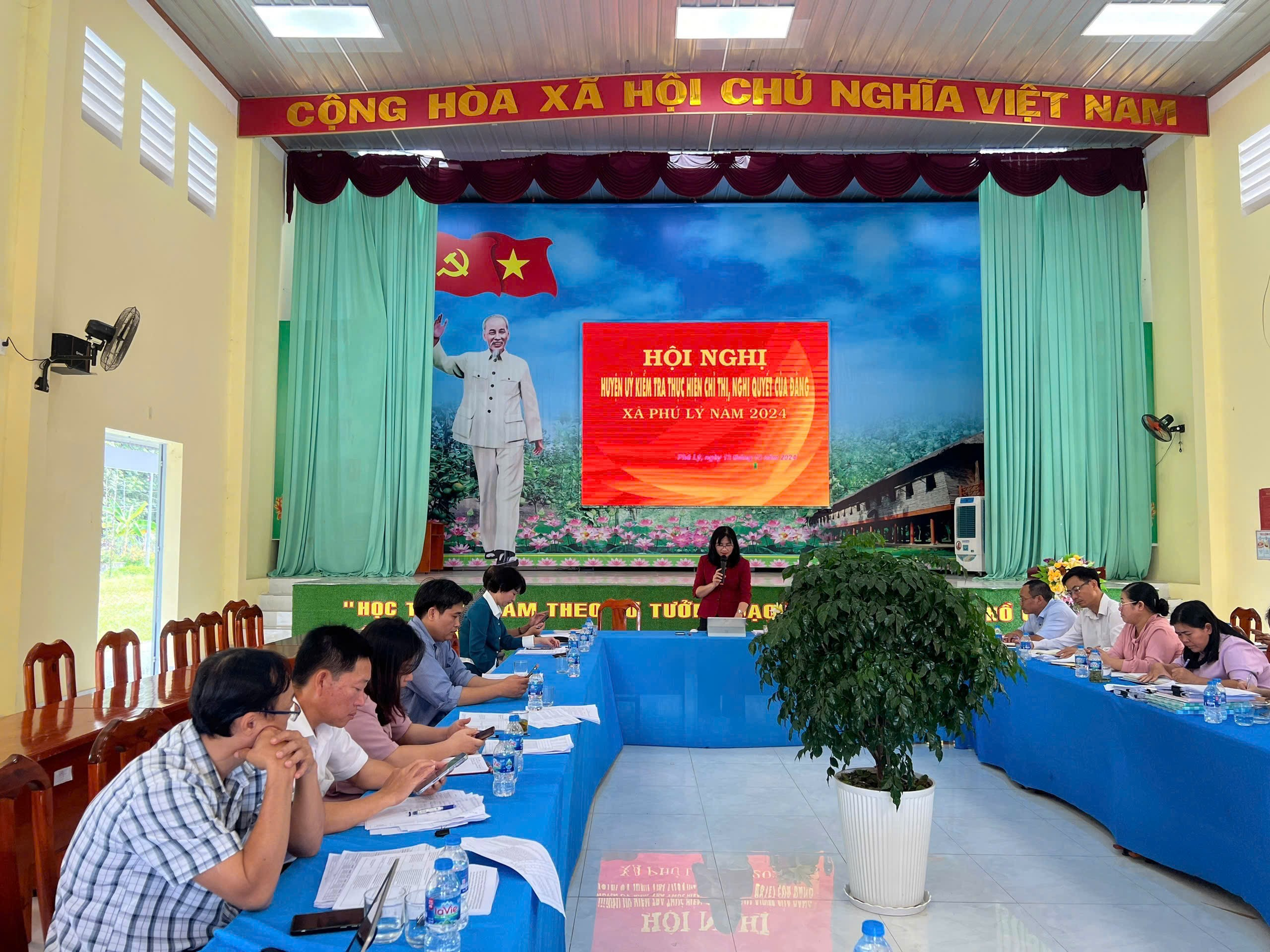 Thực hiện Kế hoạch số 233-KH/HU ngày 01/11/2024 của Ban Thường vụ Huyện ủy về Kiểm tra việc thực hiện chỉ thị, nghị quyết năm 2024, trong 2 ngày 11,12/12/2024, Đoàn kiểm tra số 2 do đồng chí Lê Đỗ Kim Chi - Phó Bí thư Thường trực Huyện ủy, Chủ tịch Hội đồng Nhân dân huyện - Trưởng đoàn, tiến hành làm việc với tập thể BCH Đảng bộ xã Thạnh Phú, Phú Lý, Mã Đà về kết quả thực hiện nghị quyết, chỉ thị của Đảng năm 2024. Tham dự cùng đoàn kiểm tra còn có các đồng chí: Đ/c Nguyễn Thị Dung - Huyện ủy viên, Phó Chủ tịch UBND huyện - Phó đoàn; Đ/c Nguyễn Thanh Tuyền - Ủy viên Ban Thường vụ, Chủ tịch Ủy ban Mặt trận Tổ quốc Việt nam huyện cùng các đồng chí theo Quyết định số 3041-QĐ/HU ngày 07/11/2024 của Ban Thường vụ Huyện ủy. Tham dự và làm việc đoàn kiểm tra ở các đảng ủy xã có các đồng chí Bí thư Đảng ủy xã, các đồng chí trong Ban Chấp hành Đảng bộ, đại diện Mặt trận Tổ quốc, Hội Cựu Chiến Binh, Đoàn Thanh Niên, Hội LHPN, Hội Nông dân và đại diện các chi bộ trực thuộc của xã.