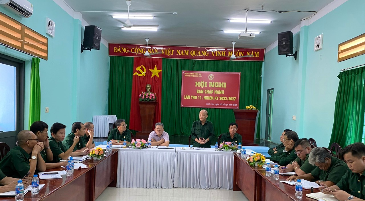 Sáng ngày 18/6 tại Hội trường Khối Vận, Hội Cựu chiến binh huyện Vĩnh Cửu tổ chức Hội nghị Ban chấp hành lần thứ 11 nhiệm kỳ 2022-2027. Đến dự và chỉ đạo Hội nghị có đồng chí Nguyễn Văn Phơi- Ủy viên Ban Chấp hành Hội Cựu chiến binh Việt Nam, Chủ tịch Hội Cựu chiến binh tỉnh Đồng Nai và đồng chí Thái Tam Sơn-Ủy viên Thường vụ, Trưởng Ban Dân vận Huyện ủy. Tại hội nghị các đại biểu đã thảo luận về dự thảo báo cáo công tác Hội 6 tháng đầu, phương hướng nhiệm vụ 6 tháng cuối năm 2024.
