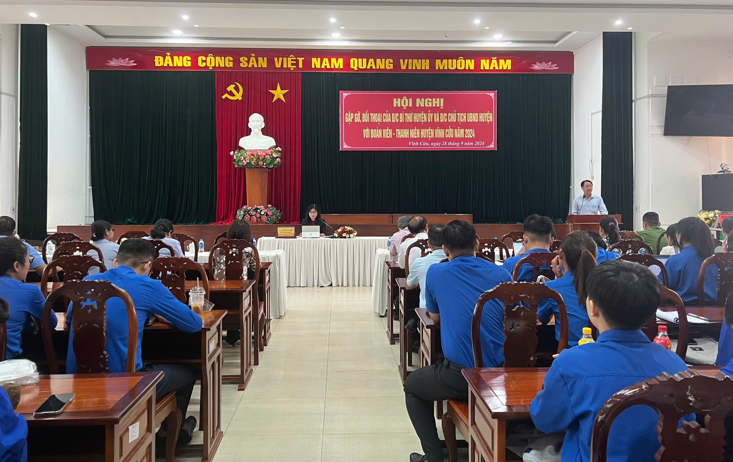 Sáng ngày 28/9/2024, tại hội trường Huyện ủy, đồng chí Lê Đỗ Kim Chi – Phó Bí thư Thường trực Huyện ủy – Chủ tịch Hội đồng Nhân dân huyện chủ trì hội nghị gặp gỡ, đối thoại trực tiếp với đoàn viên, thanh niên trên địa bàn huyện năm 2024. Tham dự hội nghị đối thoại có đồng chí Thái Tam Sơn–Ủy viên BTV Huyện ủy– Trưởng Ban Dân vận Huyện ủy; đồng chí Nguyễn Thị Dung- Huyện ủy viên- Phó Chủ tịch UBND huyện; đồng chí Đàm Quốc Đạc– Huyện ủy viên– Bí thư Huyện Đoàn; đại diện lãnh đạo các Ban Xây dựng Đảng Huyện ủy, Văn phòng Huyện ủy; lãnh đạo UB MTTQ VN và các tổ chức chính trị-xã hội huyện; Văn phòng HĐND-UBND huyện, Trưởng Phòng Nội vụ và lãnh đạo các phòng, ban trực thuộc UBND huyện; Bí thư Đảng ủy xã, thị trấn; Bí thư chi bộ, Ban Giám hiệu các trường THPT, TTGDNN-GDTX huyện; Ban Thường vụ Huyện Đoàn và 150 đoàn viên, thanh niên tiêu biểu.