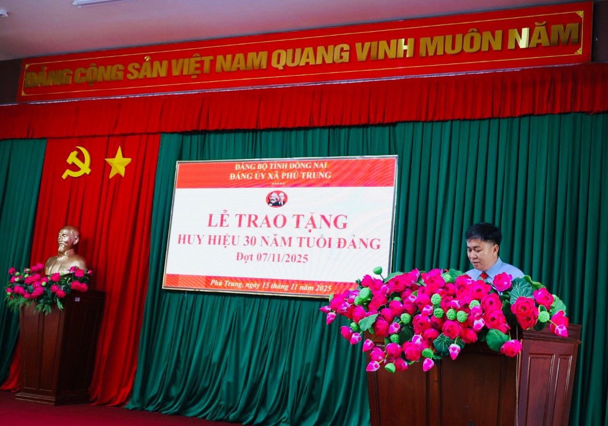 Ngày 15-11, Đảng ủy xã Phú Trung đã long trọng tổ chức Lễ trao tặng Huy hiệu 30 năm tuổi Đảng cho đồng chí Nguyễn Hữu Liếu, đảng viên thuộc Chi bộ thôn Phú Tâm. Đây là phần thưởng cao quý nhằm ghi nhận chặng đường rèn luyện, phấn đấu không ngừng của đồng chí trong suốt ba thập kỷ đứng trong hàng ngũ của Đảng, đồng thời thể hiện sự trân trọng của Đảng bộ đối với những đóng góp âm thầm nhưng bền bỉ của đội ngũ đảng viên tại cơ sở.
