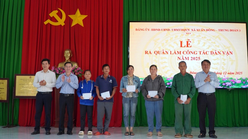 Đợt ra quân làm công tác dân vận diễn ra trong 4 ngày, từ ngày 16/12/2025 đến ngày 19/12/2025, tại địa bàn ấp 1 và ấp Suối Lức, xã Xuân Đông. Nội dung trọng tâm là tổ chức các hoạt động tuyên truyền kỷ niệm 81 năm Ngày thành lập Quân đội nhân dân Việt Nam (22/12/1944 – 22/12/2025) gắn với các phần việc dân vận cụ thể, thiết thực. Theo kế hoạch, cán bộ, chiến sĩ Trung đoàn 3 phối hợp cùng Nhân dân địa phương chỉnh trang sân vườn, hàng rào mặt tiền nhà ở; vệ sinh, tu sửa đường giao thông nông thôn; trồng cây xanh; nạo vét kênh mương thoát nước tại các tuyến đường khu dân cư trên địa bàn hai ấp. Bên cạnh đó, đơn vị còn tổ chức khám bệnh, cấp phát thuốc miễn phí cho người dân tại Nhà văn hóa ấp Suối Lức, góp phần chăm lo sức khỏe cho Nhân dân.
