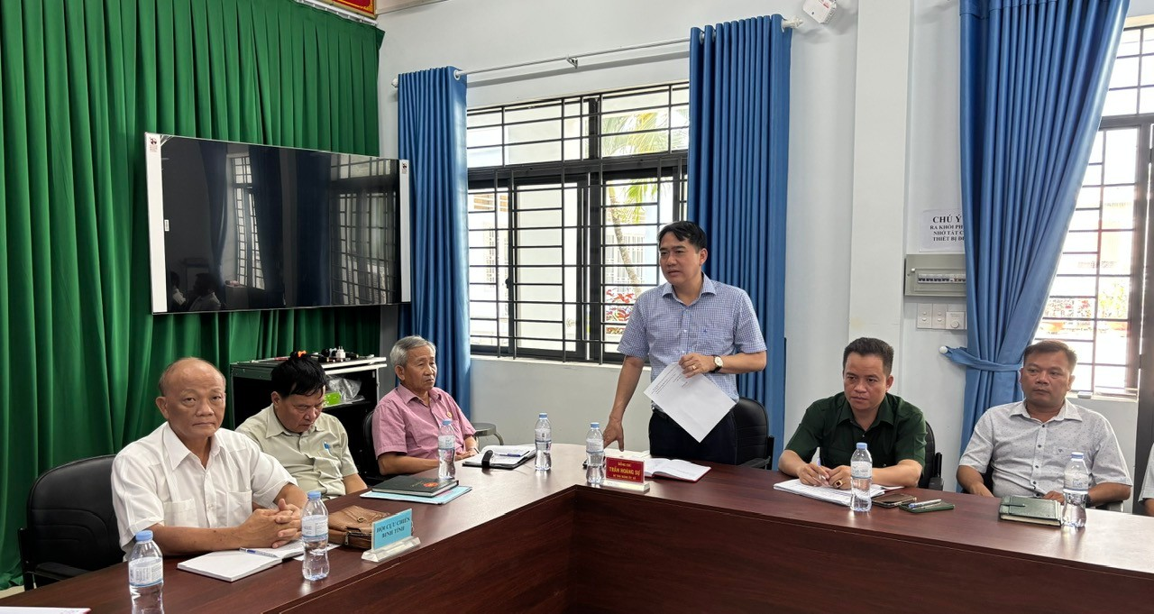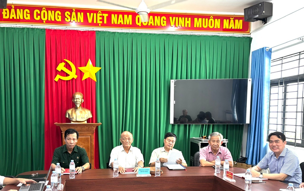 Đồng chí Nguyễn Văn Phơi Chủ tịch Hội CCB tỉnh (thứ hai từ trái qua) làm việc với Hội CCB xã Vĩnh Thanh (huyện Nhơn Trạch)